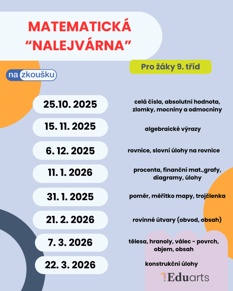 Spojili jsme síly a rozhodli jsme se ještě více zaměřit na pomoc žákům 9. tříd z Příbrami a širokého okolí. Připravili jsme jedinečný koncept matematické “ nalejvárny „ pro všechny, kteří si chtějí projít vše, co je může mile i nemile překvapit v Cermat testech z matematiky.
